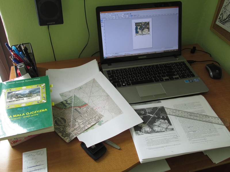 Dopiero 5 maja otrzymałem wiadomość z urzędu gminy, o tym że prace powoli ruszają do przodu. Choć – jak się potem okazało – do ich „ruszenia” była jeszcze długa droga. 8 maja firmie z Opola, która została wybrana do realizacji projektu, wysłałem gotowe teksty, a 12 maja przekazałem osobiście wszystkie materiały ikonograficzne (zdjęcia, mapy, szkice itp.). Przez kolejne dni współpracujący z drukarnią grafik zajmował się składem tekstu. 20 maja (miesiąc przed promocją książki!) otrzymałem od niego dwa szablony pierwszego rozdziału książki, z których miałem wybrać jeden, by na jego podstawie składać dalej publikację. Było to pierwszych 8 stron tekstu, które – w zależności od szablonu – różniły się zastosowaną czcionką i formą rozmieszczenia fotografii. Choć z pozoru różnice w zastosowanych szablonach nie były aż tak wielkie, to wybrany przeze mnie układ (ten bardziej złożony) wymagał m.in. od grafika większej ilości godzin spędzonych przy pracy. I tak prace ruszyły do przodu.