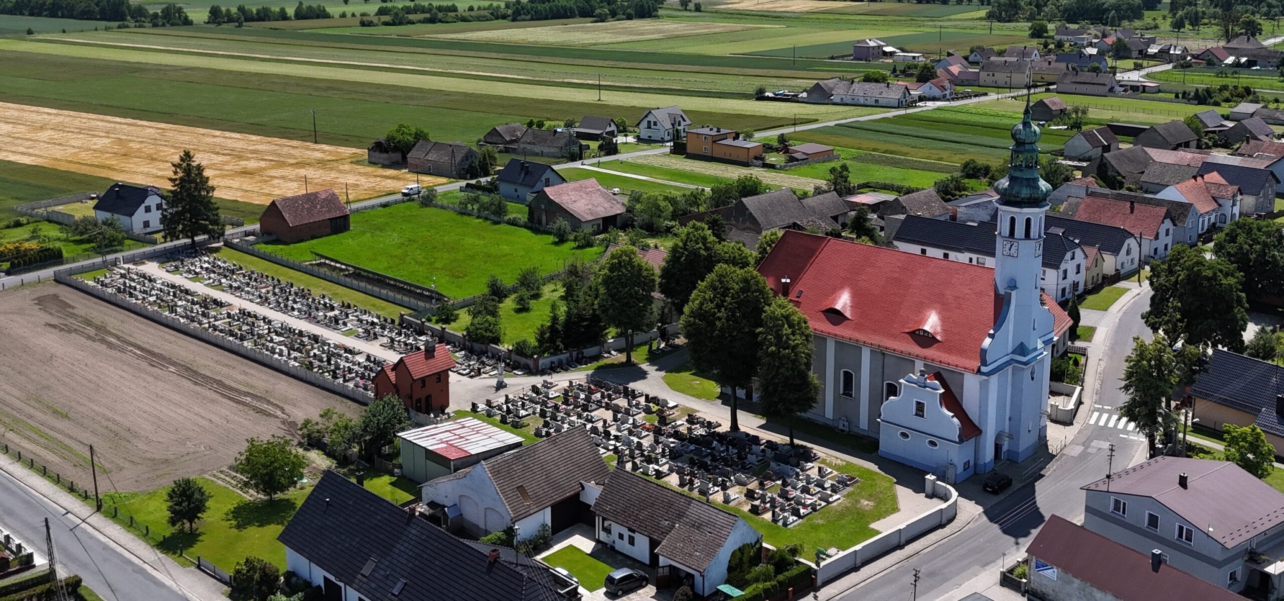 Na początek kilka faktów z parafialnej kroniki, którą w 1849 r. założył ks. Mattheus Patrzek (ur. 1813, proboszcz w latach 1846-1864). W krótkim wstępie dotyczącym historii parafii czytamy: „Tutejszy kościół […] otoczony jest cmentarzem, który rozciąga się z zachodu na wschód. Od wschodu graniczy z ogrodem farskim, od zachodu przylega do niego droga prowadząca z Głogówka do Prószkowa, a od północy ogród zagrodnika Sebastiana Rehmeta”.
