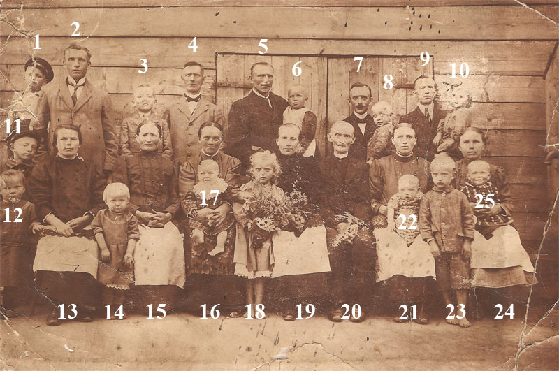 Poniżej zamieszczam imienny wykaz osób znajdujących się na fotografii. Został on nieco uproszczony w porównaniu do całości wiedzy, jaką przez ostatnie lata w tym temacie pozyskano.