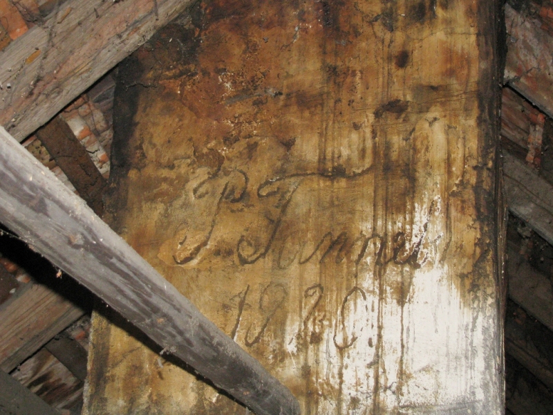 Odnaleziona w wewnętrznej części budynku taka sama inskrypcja posiada dodatkowo rok budowy 1909, co sugeruje iż to właśnie wtedy mógł zostać wybudowany cały dom. Dzięki temu wiemy, że zabudowania te nie zostały wybudowane za życia dziadka Johanna, który zmarł w roku 1883, a przez któregoś z jego potomków. W 1909 r. mieszkał tutaj jeszcze ww. Johann (ur. 1884), który sam lub też wspólnie ze swoim ojcem wybudował nowy bądź też rozbudował istniejący ówcześnie dom.