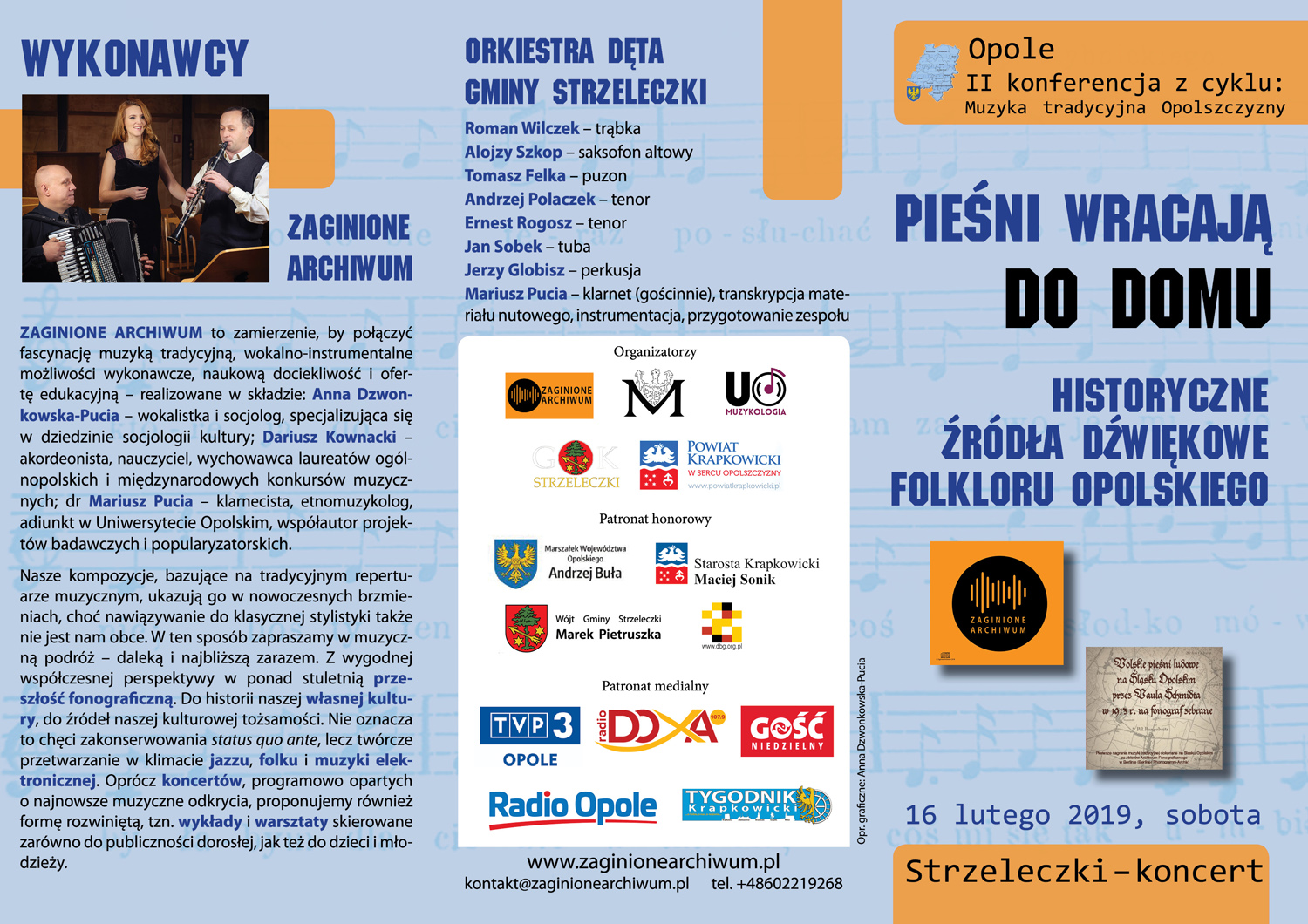 W imieniu organizatorów, wszystkich zainteresowanych zapraszam do Strzeleczek, gdzie już w najbliższÄ… sobotÄ™ – 16 lutego – odbÄ™dzie siÄ™ koncert pt. „PieÅ›ni wracajÄ… do domu”.