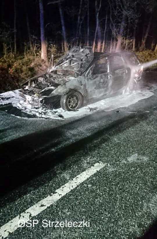 We wtorek 5 maja o 22:25 do dyżurnego Stanowiska Kierowania Komendanta Powiatowego Państwowej Straży Pożarnej w Krapkowicach wpłynęło zgłoszenie o pożarze samochodu osobowego, na drodze wojewódzkiej 414 na wysokości Smolarni.