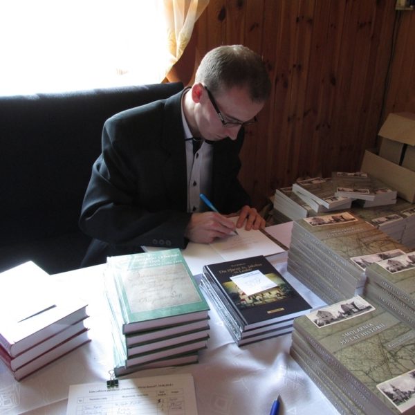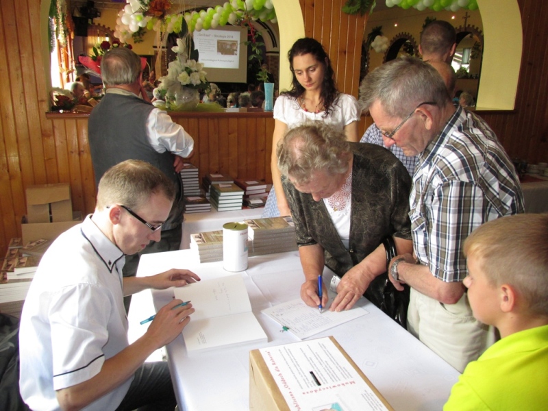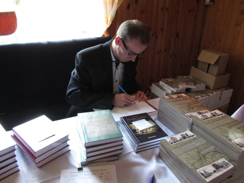 O godzinie 16:20 rozpoczął się drugi punkt spotkania – rozmowa z autorem monografii, którą poprowadził Daniel Podobiński z Partnerstwa Borów Niemodlińskich. Podczas tej rozmowy goście dowiedzieli się m.in. o tym skąd i kiedy wziął się pomysł na napisanie książki, jak wyglądała kilkuletnia praca nad zbieraniem materiałów, jak przebiegała w tej kwestii współpraca z mieszkańcami itp. Po zakończeniu rozmowy wszyscy zainteresowani mogli kontynuować nabywanie publikacji.